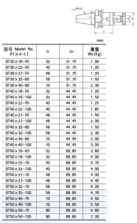 BT 錐數(shù)控混合插入式銑刀桿