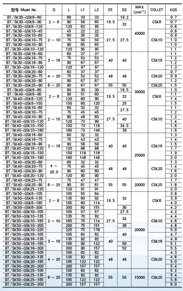 GSK高轉(zhuǎn)速精密筒夾系列
